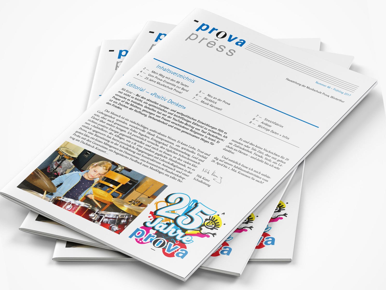 Mit der «prova press» informiert die Musikschule seine Kunden zweimal jährlich. Konzeption, Gestaltung und Umsetzung des Magazins.